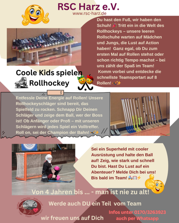 hast auch DU Lust dabei zu sein? Melde Dich einfach unter 0170/3263923 , Rollsportausrüstung ist vorhanden und wird ausgeliehen. Also nur Sortzeug und gute Laune mitbringen und den tollsten Sport der Welt kennen lernen.
